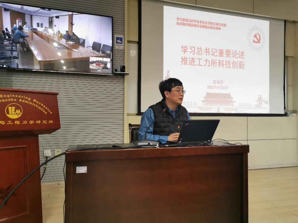 發布時間: 2021-04-09 點擊數量:40184月6日下午,根據工力所黨史學習教育安排,黨委委員、科技發展部主任溫瑞智同志在三樓報告廳為全所科研人員做了“學習習近平總書記重要論述 推進工力所科技創新”專題培訓。