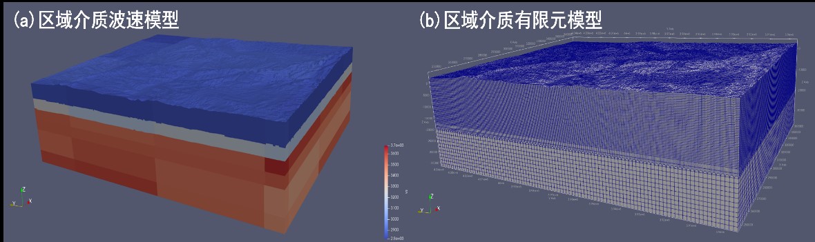 圖5 區域介質波速模型與有限元模型