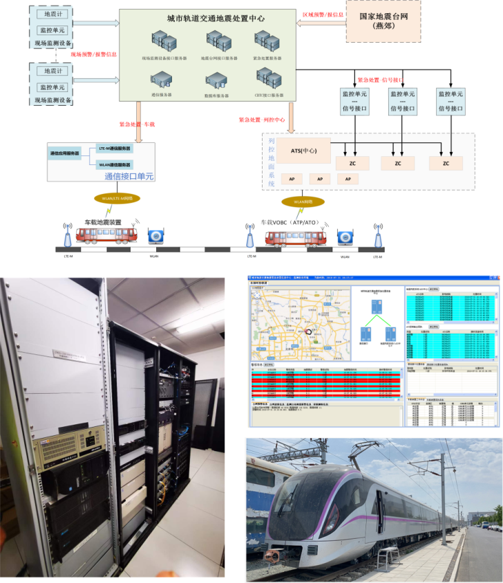 圖2 項目研發(fā)的城市軌道交通地震緊急處置系統及其在國家鐵道試驗中心進行示范應用情況