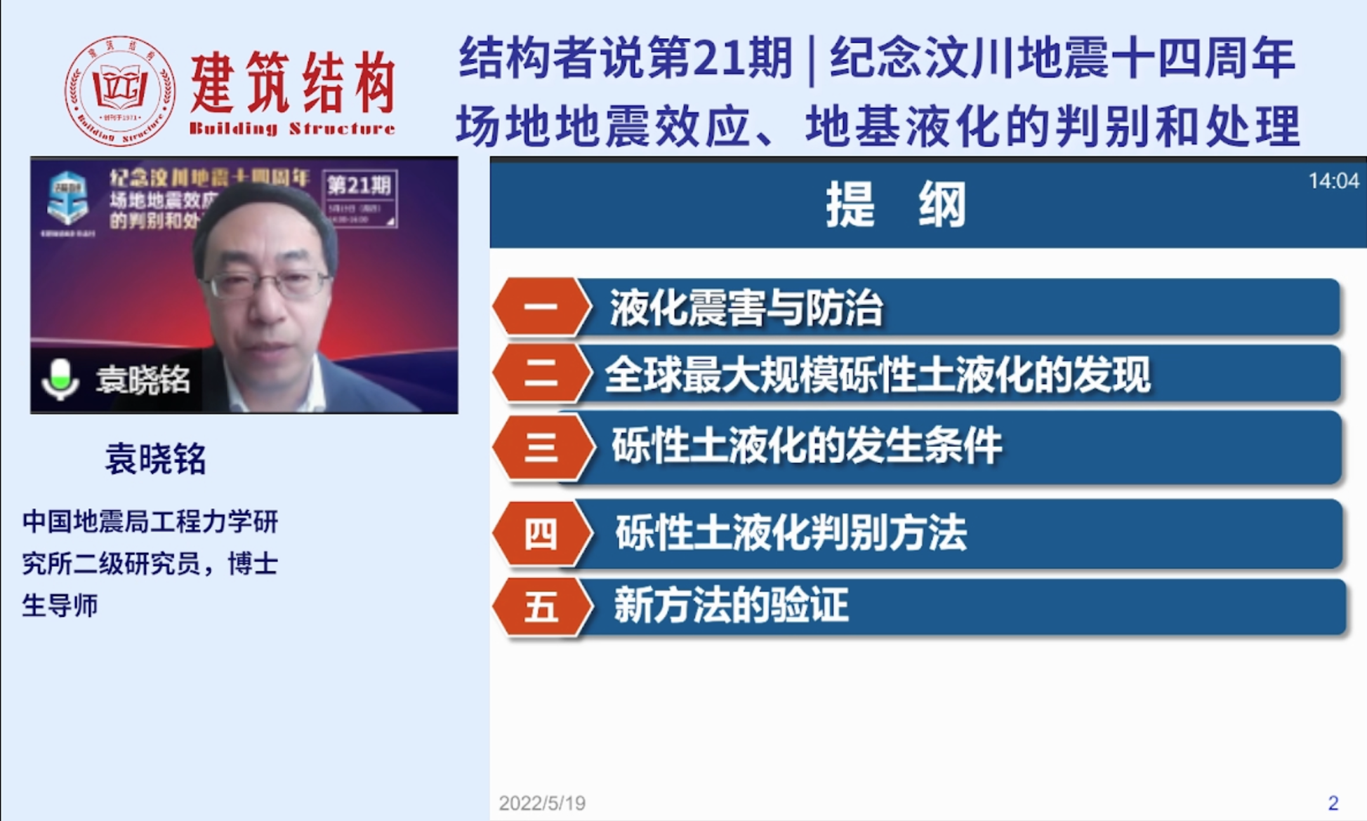 發布時間: 2022-05-24 點擊數量:5731袁曉銘研究員的報告中,介紹了2008年汶川大地震中發生的全球最大規模的礫性土液化及震害現象,解釋了礫性土液化的機理和觸發條件;介紹了具有中國特色的礫性土液化判別方法以及通過國際合作對新方法的驗證結果。報告面向一線工程技術人員,采用深入淺出的方式進行講解,受到工程技術人員的歡迎。報告后的互動提問環節,袁曉銘研究員在線回答了聽眾提出的關于“學校和醫院提高一度進行液化設防的必要性”、“礫性土和砂土液化判別方法的差別”、“不液化和不考慮液化概念的區別”等一系列問題。